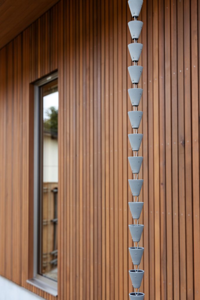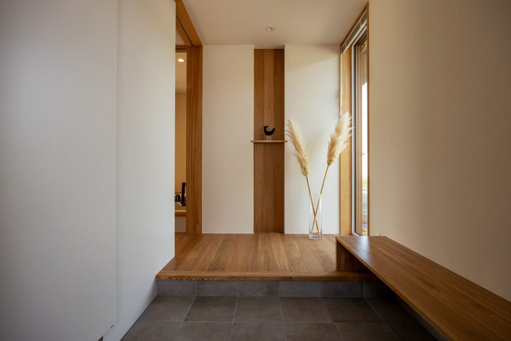 外壁や軒天の一部に杉を、玄関側にはレッドシダーを使い、家全体の雰囲気をより上質なものにしています。
