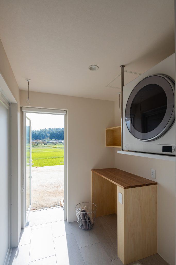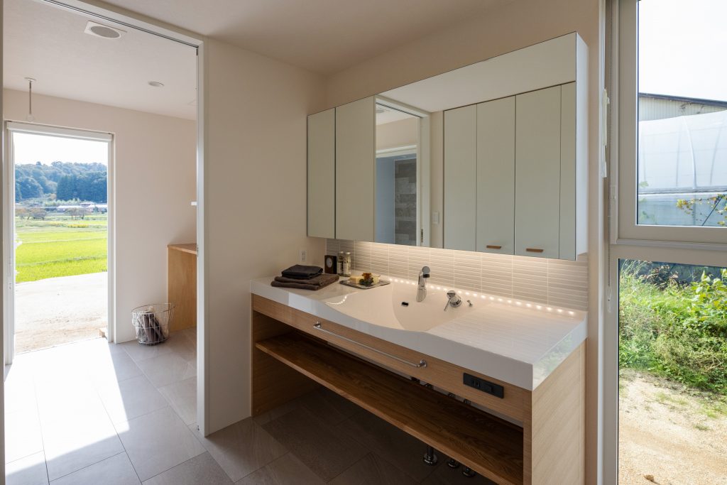 洗面台・脱衣室は分けて、家族それぞれが使いやすいようにしました。脱衣室は乾太くんを取り入れて、家事の時短も叶えます。