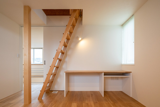 吹抜けを囲んでぐるり回遊できる2階フロア 書斎スペースや小屋裏の趣味室など 毎日を楽しむアイデアが詰まっています。