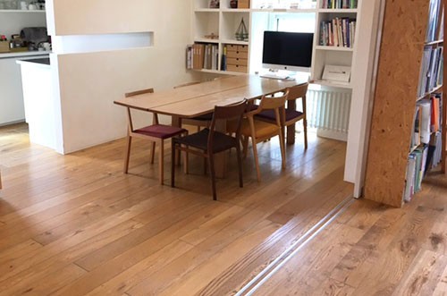 D.O.Aでは天然木のフロアを使っているので、木が呼吸できるように専用のメンテナンス材を使っています。合板のフロアでピカピカの塗装をされていないので季節を通して素足でも気持ちよく過ごせます。D.O.Aの事務所ももちろん天然木です。